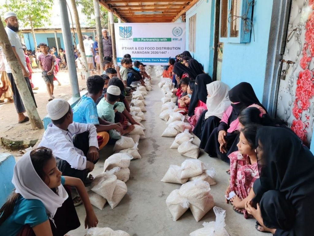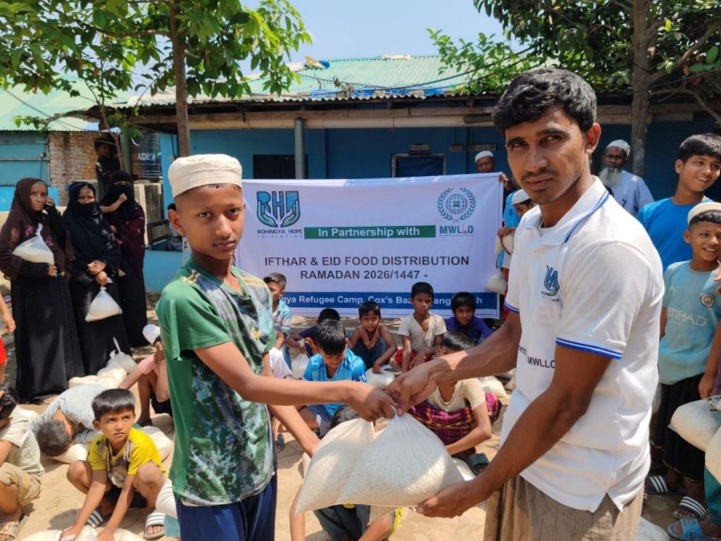This year, MWLLO partnered with Rohingya Hope Initiative to deliver Fitrana assistance to Rohingya refugees living in camps in Cox’s Bazar, Bangladesh. The programme reached more than 3,000 families, helping them prepare for the arrival of Eid Al-Fitr with essential food support. For many families in the camps, even small assistance can make a meaningful difference during the festive days of Eid.